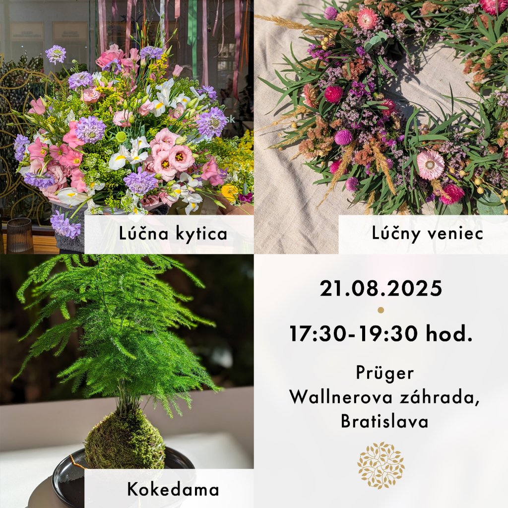 Ponorte sa do sveta prírody a kreativity – na výber máte z troch workshopov: lúčna kytica, lúčny veniec alebo kokedama, každá technika s vlastným čarom a príbehom.